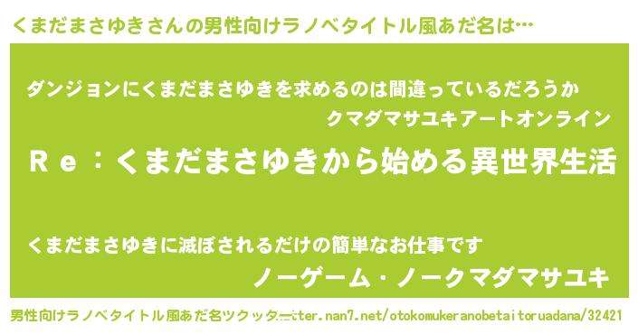 | 女子向けラノベタイトル風あだ名 | 『闇のくまだまさゆき』 |
