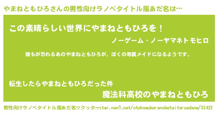| ヘコむあだ名 | 『やまねともひろ(苦笑)』『やまっ子』 |