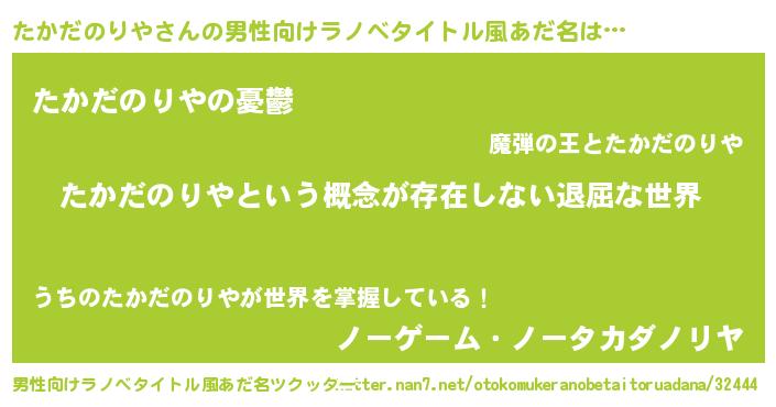 | 女子向けラノベタイトル風あだ名 | 『異世界で失敗しない100のたかだのりや』 |