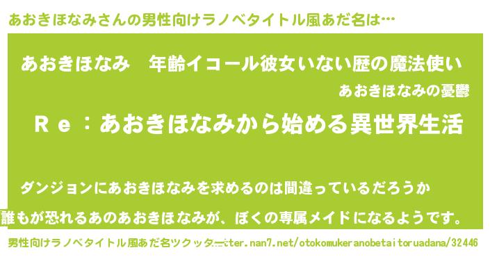 | 女子向けラノベタイトル風あだ名 | 『あおきほなみストレイドッグス』 |