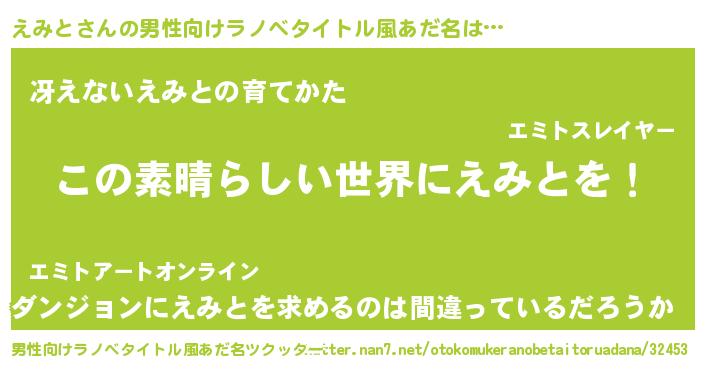 | 意味不明あだ名 | 『住所不定無職えみと(53歳)』 |
