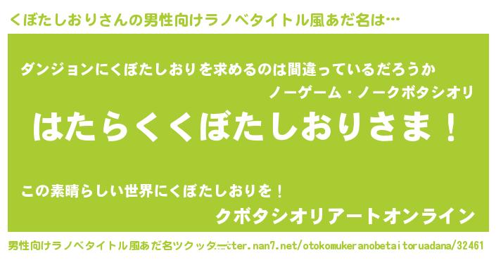 | 胡散臭い通販商品みたいなあだ名 | 『伝統あるサプリメント…その名も「くぼたしおり」』 |