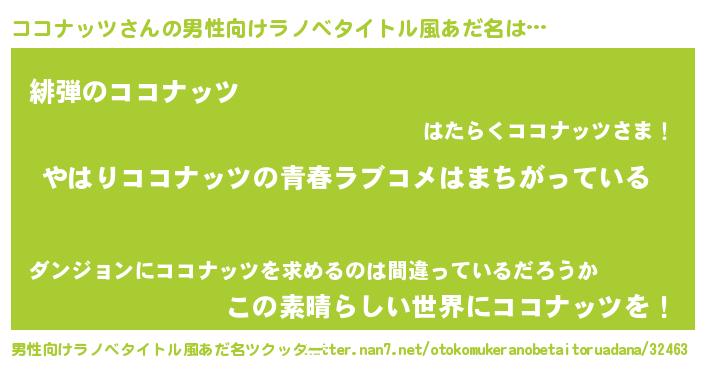 | 女子向けラノベタイトル風あだ名 | 『ココナッツの雑貨屋さん』 |