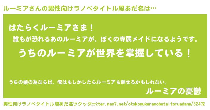 | 女子向けラノベタイトル風あだ名 | 『男装ルーミアの憂鬱な任務』 |