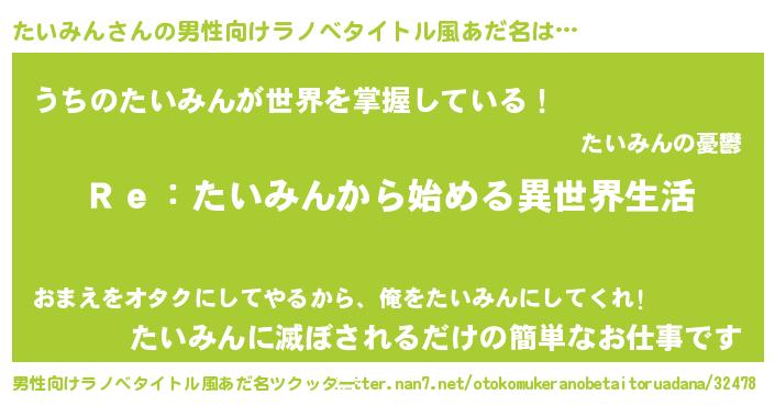 | 意味不明あだ名 | 『自称たいみん』『ペロリンたいみん』 |