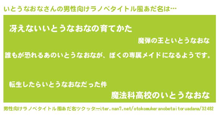 | 女子向けラノベタイトル風あだ名 | 『異世界でカフェいとうなおなを開店しました。』 |