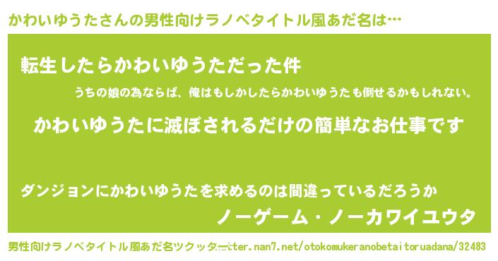 | 胡散臭い通販商品みたいなあだ名 | 『モンドセレクションを受賞したイリジウム磁石…その名も「かわいゆうた」』 |