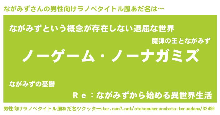 | ヘコむあだ名 | 『ながみず(苦笑)』『ながにー』 |