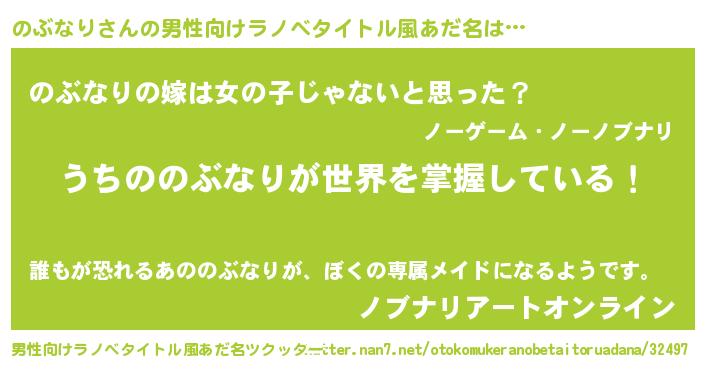 | 女子向けラノベタイトル風あだ名 | 『男装のぶなりの憂鬱な任務』 |