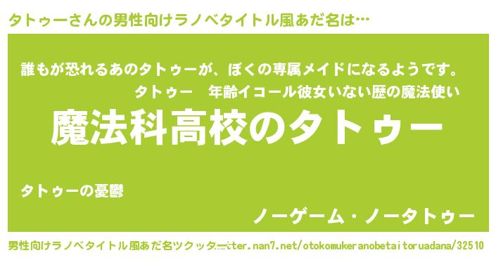 | ヘコむあだ名 | 『タトゥー(小並感)』『タトもー』 |