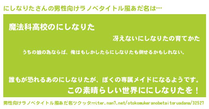 | 女子向けラノベタイトル風あだ名 | 『にしなりたの婚約者』 |