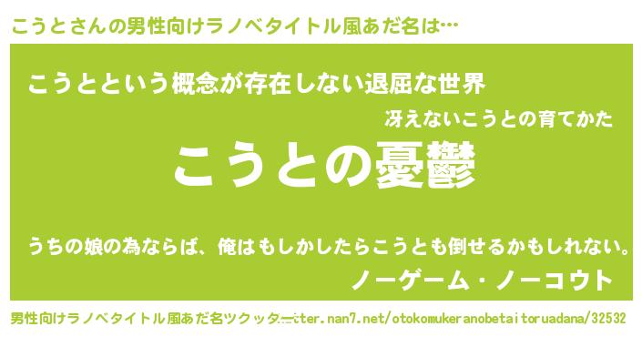 | 女子向けラノベタイトル風あだ名 | 『(仮)こうとのやんごとなき事情』 |