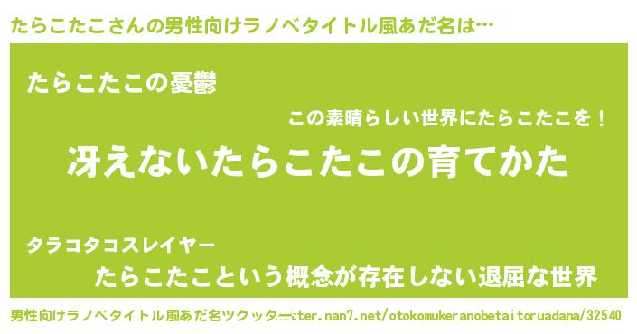 | 女子向けラノベタイトル風あだ名 | 『男装たらこたこの憂鬱な任務』 |