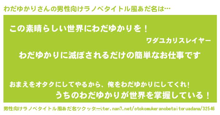わだゆかりさんの男性向けラノベタイトル風あだ名をツクッター!