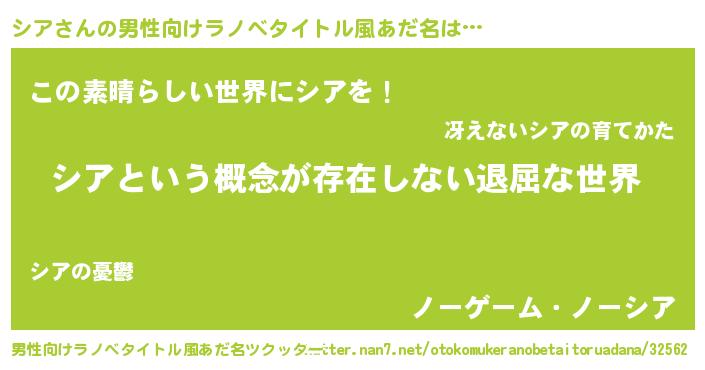 | ヘコむあだ名 | 『シア(小並感)』『シアもー』 |