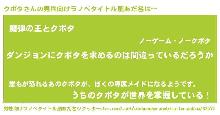 クボタさんの男性向けラノベタイトル風あだ名をツクッター!