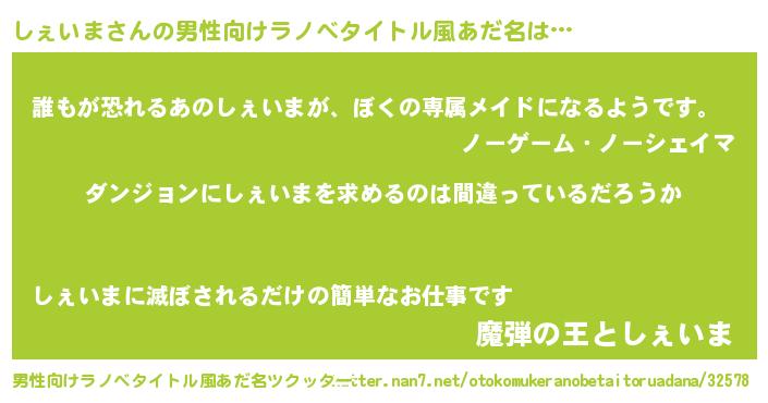 | 萌えアニメ | 主人公(しぇいま)のあだ名『 しぇてゅん』 |