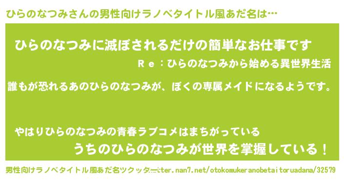 | 意味不明あだ名 | 『永久保存ひらのなつみ』 |