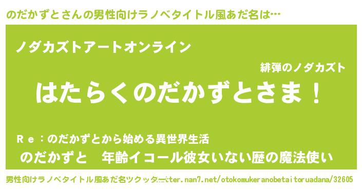 | 意味不明あだ名 | 『ペロリンのだかずと』『自称のだかずと』 |