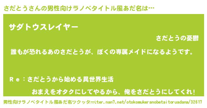 さだとうさんの男性向けラノベタイトル風あだ名をツクッター!