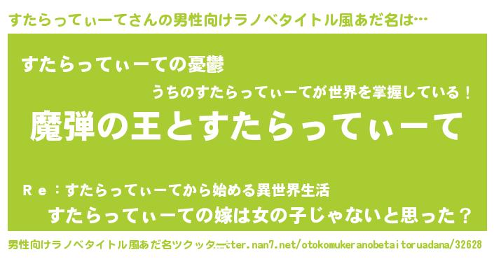 | 女子向けラノベタイトル風あだ名 | 『すたらってぃーてが死なない童話 林檎のすたらってぃーての診療簿』 |