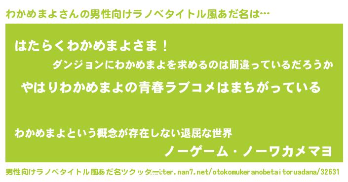 | 胡散臭い通販商品みたいなあだ名 | 『幸せが訪れる高級そうな絵画…その名も「わかめまよ」』 |