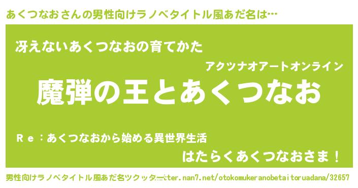 | 女子向けラノベタイトル風あだ名 | 『あくつなおが死なない童話 林檎のあくつなおの診療簿』 |