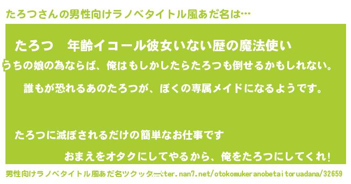 | 女子向けラノベタイトル風あだ名 | 『異世界でカフェたろつを開店しました。』 |