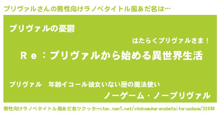 | 女子向けラノベタイトル風あだ名 | 『闇のプリヴァル』 |