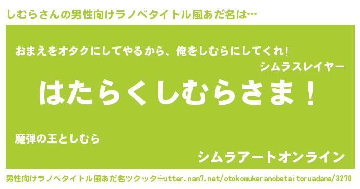 しむらさんの男性向けラノベタイトル風あだ名をツクッター!