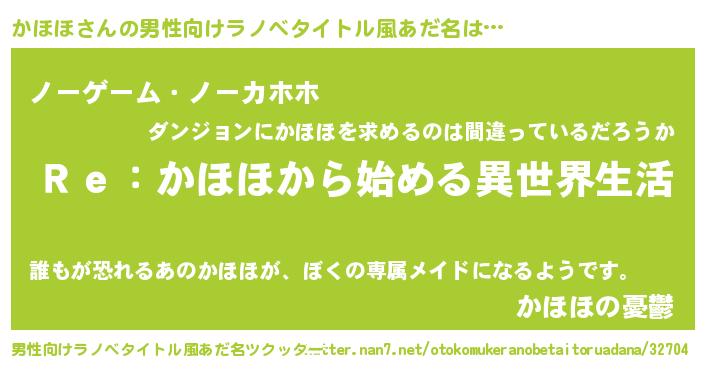 | 女子向けラノベタイトル風あだ名 | 『かほほストレイドッグス』 |