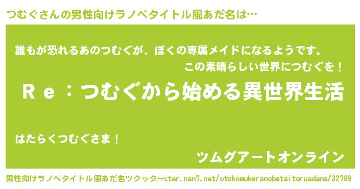 | 女子向けラノベタイトル風あだ名 | 『闇のつむぐ』『首の姫と首なしつむぐ』 |