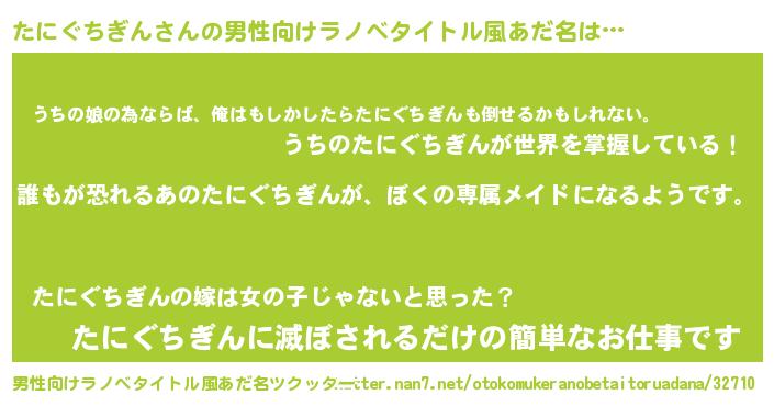 | 女子向けラノベタイトル風あだ名 | 『たにぐちぎんの契約王妃』 |