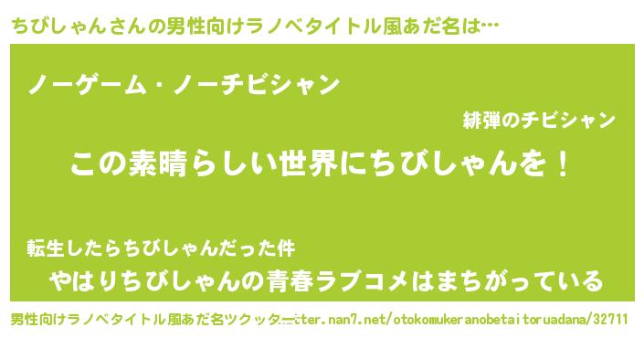 | 女子向けラノベタイトル風あだ名 | 『悪役ちびしゃんに転生したようですが、知った事ではありません』 |