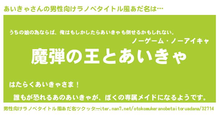| 意味不明あだ名 | 『住所不定無職あいきゃ(85歳)』 |