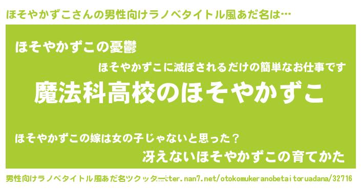 | 女子向けラノベタイトル風あだ名 | 『ほそやかずこなんてお断りですっ。』 |