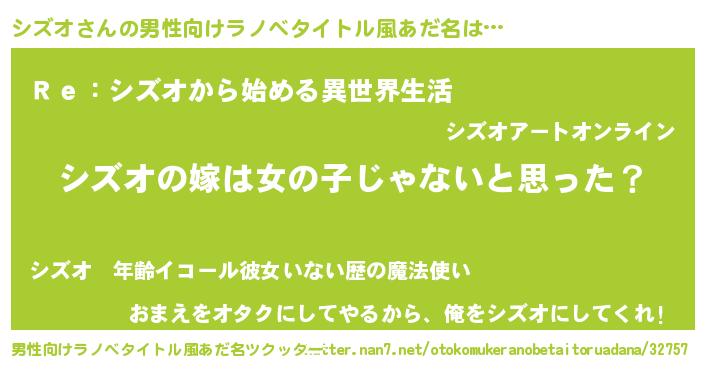 | 女子向けラノベタイトル風あだ名 | 『シズオ様がみてる』 |