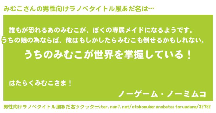 | 女子向けラノベタイトル風あだ名 | 『男装みむこの憂鬱な任務』 |
