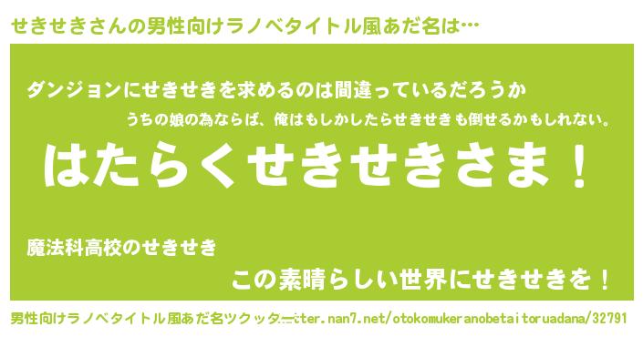 | 欧米人風あだ名 | 『アンジェラ・せきせき』 |