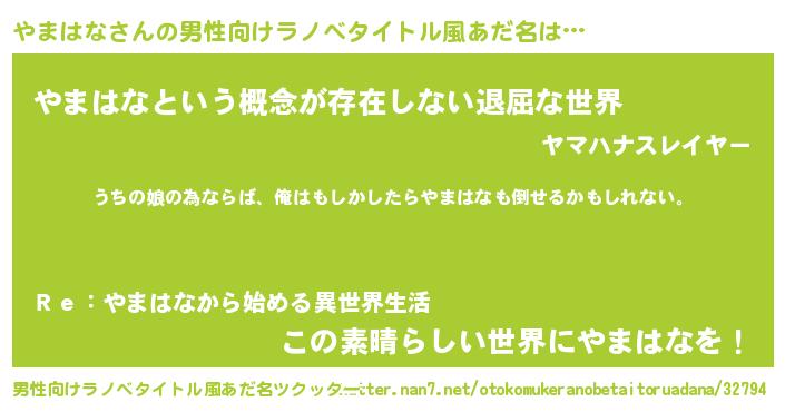 | 女子向けラノベタイトル風あだ名 | 『やまはなの婚約者』『闇のやまはな』 |