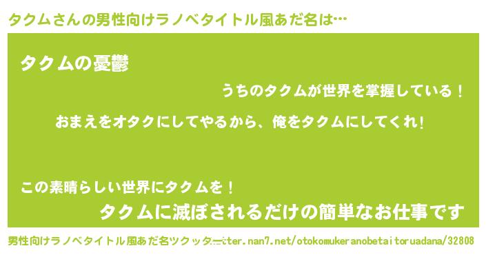 | 女子向けラノベタイトル風あだ名 | 『タクム夫妻のなれそめ』 |
