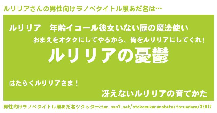 | 女子向けラノベタイトル風あだ名 | 『(仮)ルリリアのやんごとなき事情』 |