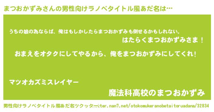 まつおかずみさんの男性向けラノベタイトル風あだ名をツクッター!