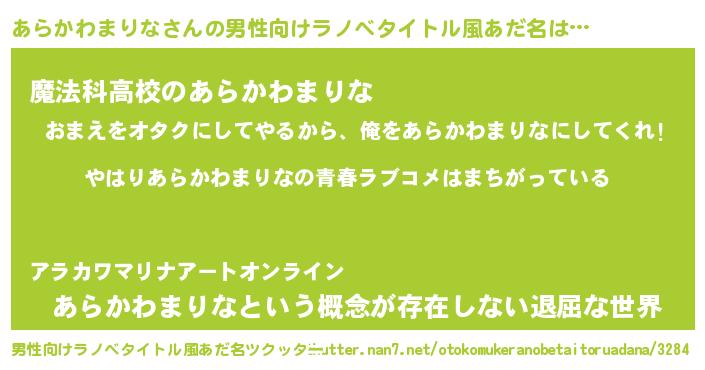 | ファンタジー風あだ名 | 『エターナルアラカワマリナー』 |