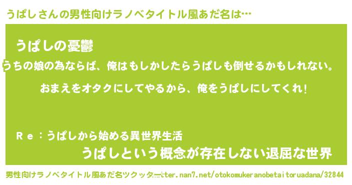| 女子向けラノベタイトル風あだ名 | 『うぱし夫妻のなれそめ』 |