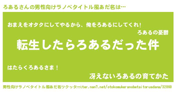 | ヘコむあだ名 | 『ろあもー』『ろある(爆)』『豆乳』 |