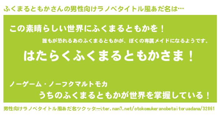| ヘコむあだ名 | 『ふくまるともか(小並感)』『ふくにゅー』 |