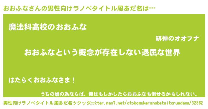 | 意味不明あだ名 | 『永久保存おおふな』『自称おおふな』 |