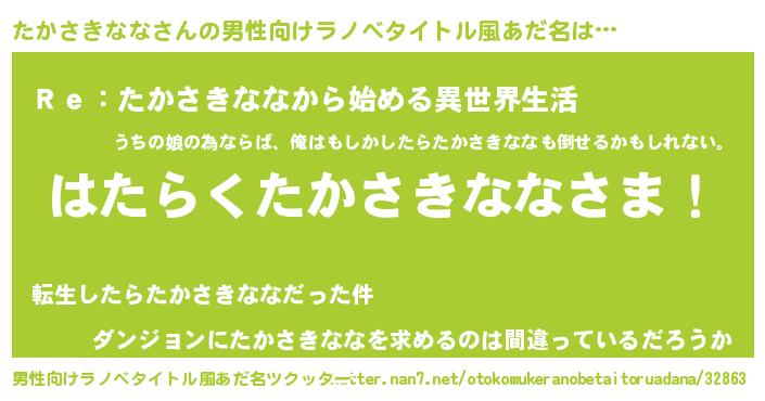 | 意味不明あだ名 | 『自称たかさきなな』 |