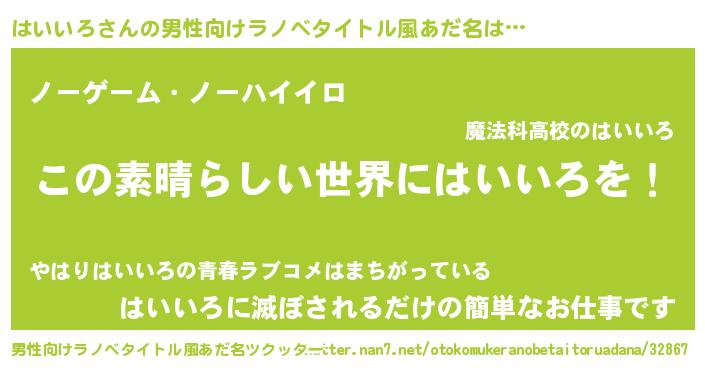 | 意味不明あだ名 | 『住所不定無職はいいろ(56歳)』 |